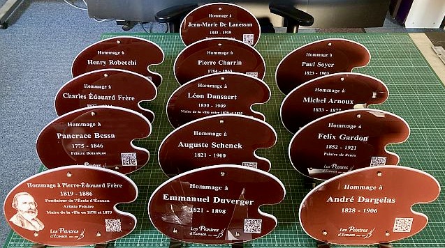 Dans le cadre de ses actions visant à promouvoir cette école de peintres aujourd’hui oubliée, ces plaques ont été totalement autofinancées par l’Association des Peintres d’Ecouen.